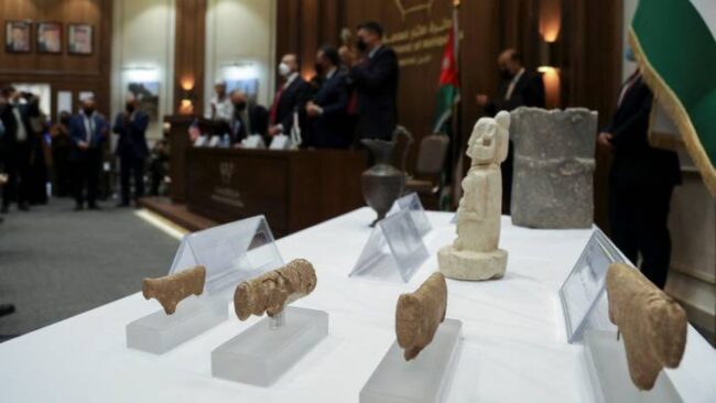 استعادت السلطات الأردنية من الولايات المتحدة، الثلاثاء، تسع قطع أثرية مسروقة، في حدث وصفه السفير الأمريكي في عمّان بأنه “تاريخي”، يندرج في إطار اتفاقية ثنائية لمكافحة تهريب الآثار.